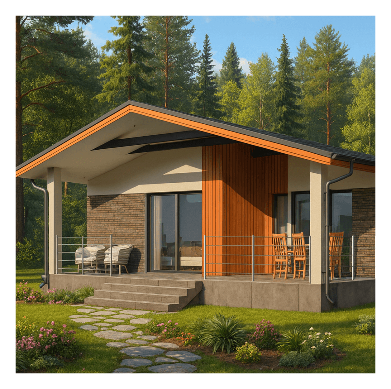 Мы даем гарантию 10 лет на конструктивную часть дома (фундамент, стены, крыша). С ними редко что-то может случиться, особенно после первых 2-3 лет, но если вдруг что-то произойдет, будем искать причину и устранять недостатки. Гарантия на внешнюю отделку составляет 2 года